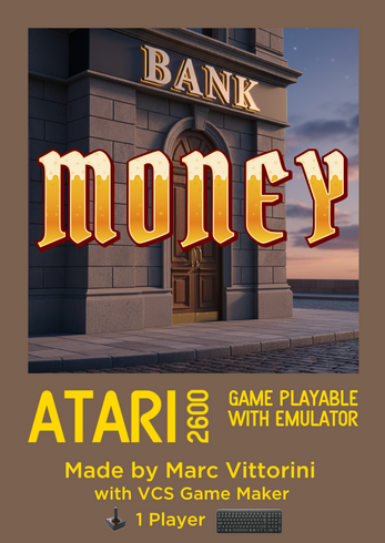 Il file MONEY.zip contiene la rom del gioco in formato .a26, manuale in lingue Inglese/Italiano in formato .pdf, il file bezel in formato .png per l'emulatore Stella, il file .bas per bBasic e il file .vcsgm per VCS Game Maker. Non ho modo di testare il gioco su una console reale ma funziona perfettamente con un emulatore. Ti ringrazio se proverai il gioco e lascerai un commento.