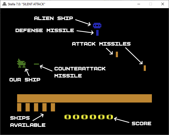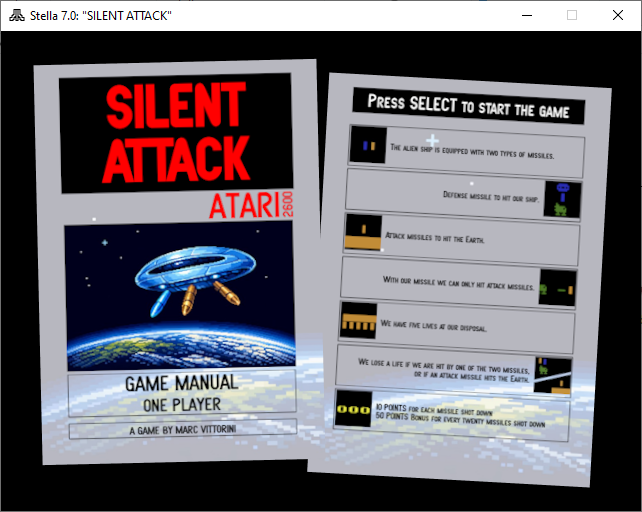 💾The download includes the game ROM, PDF manual, and BEZEL for the Stella emulator. The demo (a single level of play) is available for download or to play in your browser.